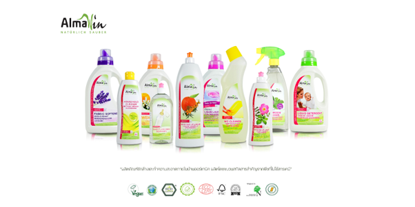 Almawin cleaning products high cleaning efficiency with organic ingredients Free from natural chemicals It does not contain bleach or fluorescent agents, so it is resistant to skin and leaves no residue that causes allergic reactions or irritation. Suitable for sensitive skin or baby skin that needs special care. Tested by a dermatologist with certificates from GREEN BRAND, VEGAN SOCIETY, ECO GARANTIE